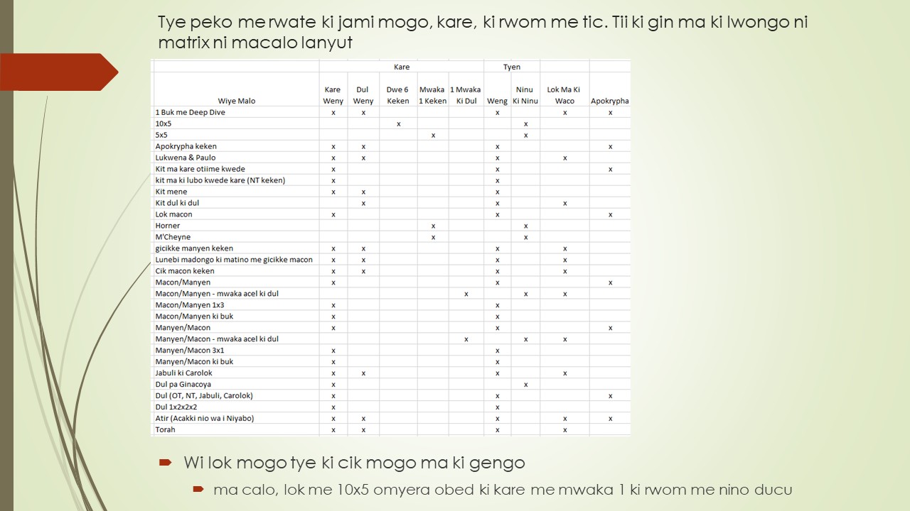 Walegi ni i mi email address ma opore ki nen ni i medo gary@worldbibleplans.com i kin dano ma ibi cwalo boti.